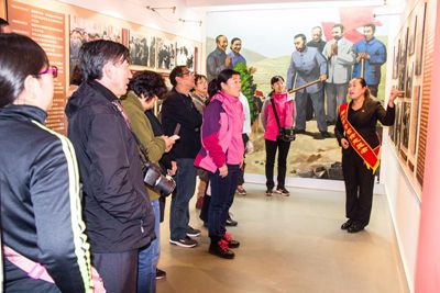 首先全体党员向敬爱的周恩来总理雕像三鞠躬,在鲜红的党旗下,面对的周总理的雕像,全体党员郑重地重温入党誓词。之后参观沙石峪陈列馆,陈列馆展厅分为“立下愚公志深山展宏图”,“万里千担一亩田 青石板上创高产”,“热情的关怀 殷切的希望”和“万里继续走,千担永远挑”4个部分,真实再现了沙石峪人民艰苦创业的历程和发展成果。