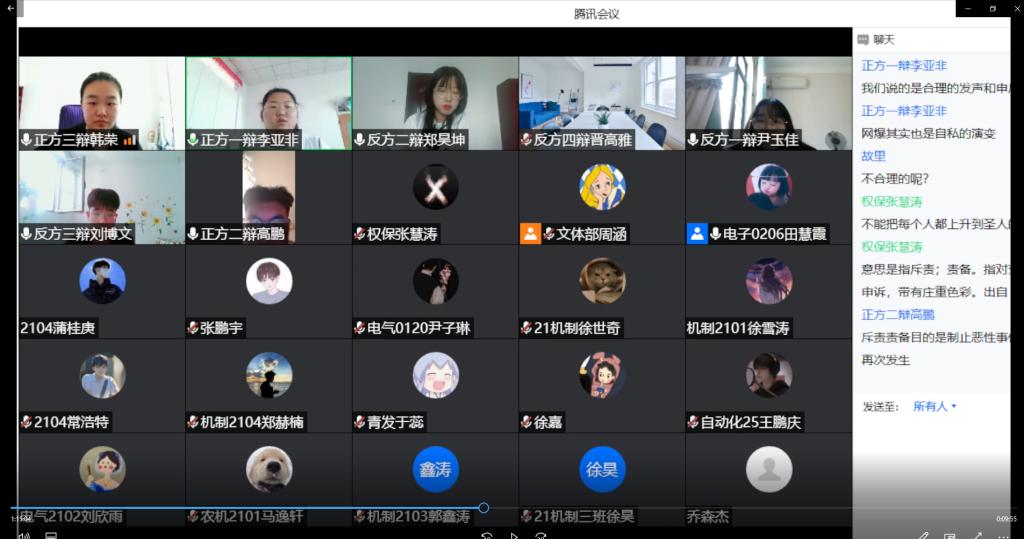 本次比赛通过腾讯会议的方式线上进行。比赛分为立论阶段、质询环节、自由辩论、总结陈词、评委评议结果五个环节,此次辩题为“灾难中的自私应不应该受到谴责”。辩论过程中,参赛选手举止端庄、从容沉稳,用富有号召力的语言、充满活力的精神风貌展示了青年老员工的蓬勃朝气,赢得了观众和评委们的阵阵的掌声,最终反方获得最佳团队称号,正方选手韩荣与反方选手郑昊坤获得最佳辩手称号。
