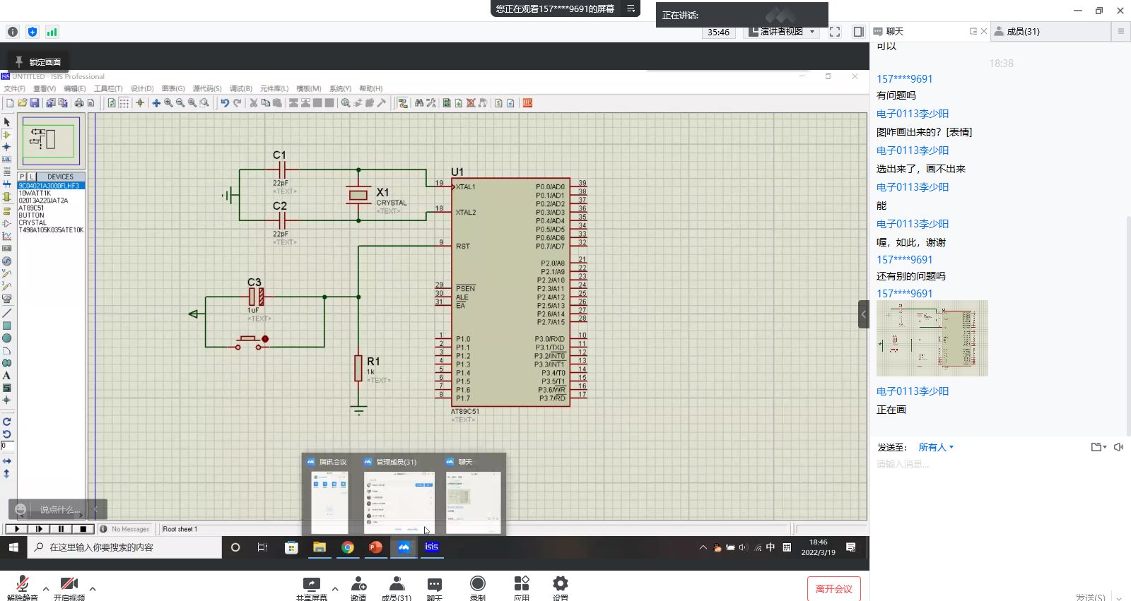 活动通过线上方式举行,内容围绕专业技能学习、电子信息知识科普、专业技能比赛展开。每周六、周日晚8点,嵌入式系统学习社大二同学通过腾讯会议开展第二课堂内容讲授。经过1个月的讲解,很多大一同学已经掌握单片机基本操作,通过使用相关仿真软件,能设计出简单的电路系统。非常设计联盟社团通过专业大赛训练提升同学们专业素养,在接到省里相关比赛通知后,对有意向参加比赛的同学进行专业选拔,通过在群里发布练习题、定期比赛考核的方式进行了为期3周的练习,并选拔出有竞争力的员工参赛。