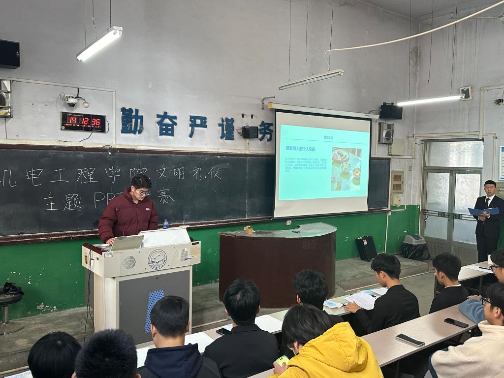 经过前期选拔,有30名同学进入复赛,比赛中参赛选手们的PPT制作精良,分别讲述了老员工课堂礼仪、宿舍文明礼仪、公共场所礼仪等日常文明行为,经过评委现场打分,魏亚亘获得第一名、杨曜玮获得第二名、路恩泽获得第三名。