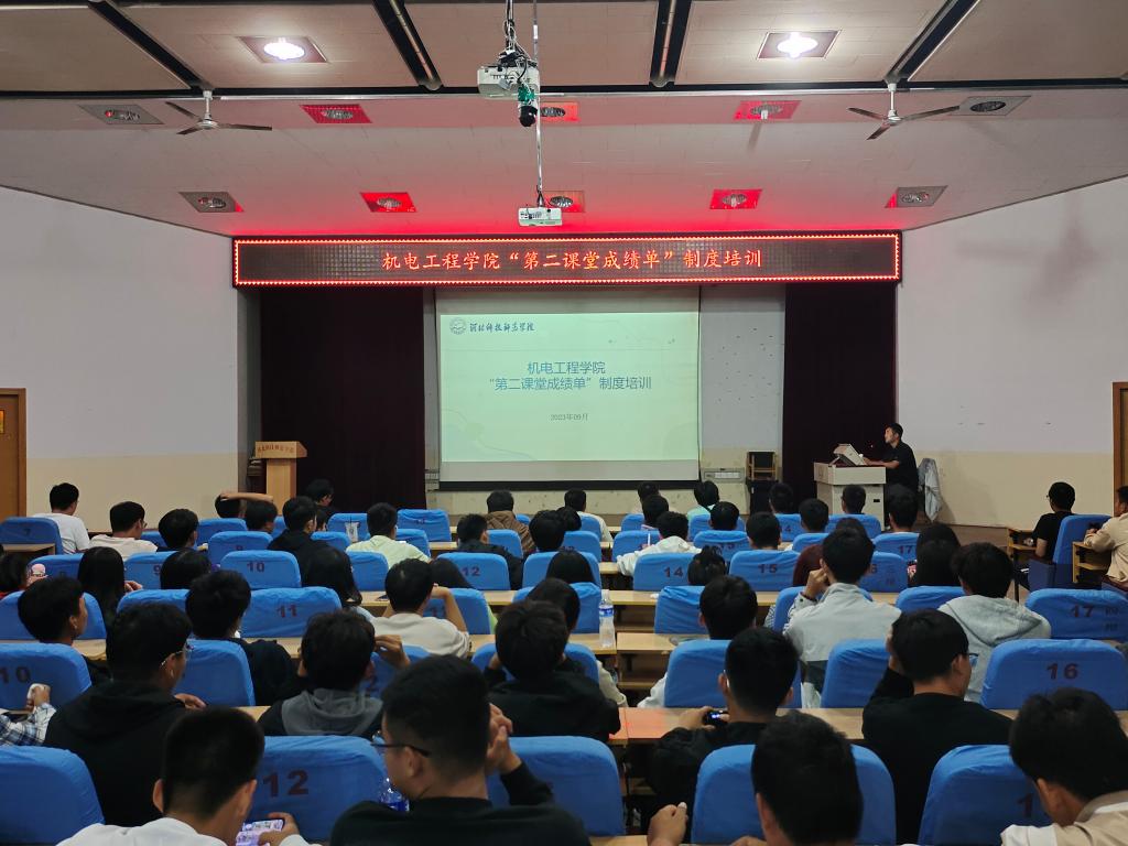 按照校团委安排部署,2023926日晚,机电工程公司在昌黎校区学术报告厅召开“第二课堂成绩单”制度培训会,2023级本科生参加此次培训会。