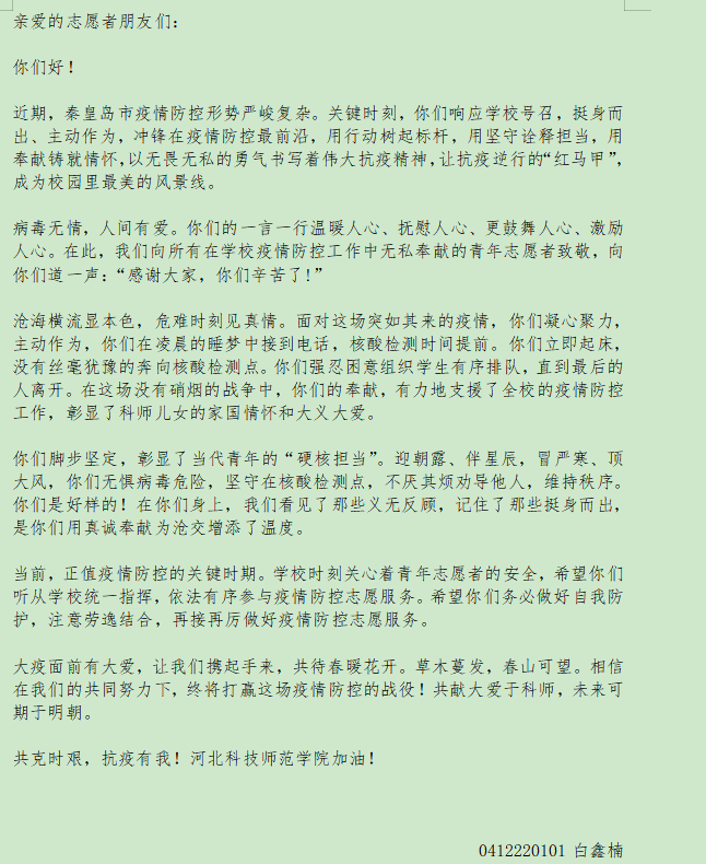为了广泛弘扬“奉献、友爱、互助、进步”志愿精神伟德国际victor1946青年志愿者协会2022年11月—12月举办志青春,愿常在活动。该活动通过结合青年志愿者工作实际展播志愿者主题文字类、图片类、视频类作品,充分发挥志愿服务先进典型的示范带头作用,着力展现青年志愿者服务大局、奉献社会、引领成长的青春风采。