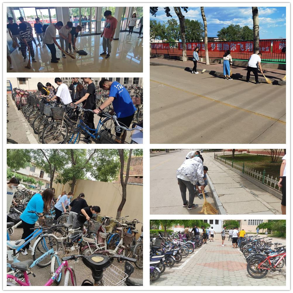此次活动主要是清洁校园垃圾、整理随意摆放的自行车、打扫实验楼角落垃圾等。在准备好需要的扫帚、垃圾袋、手套等物品后,由各专业负责人带领志愿服务者开展活动,活动共分两个小组,一组到清扫校园主路、各公司实验楼楼道、实验楼角落垃圾,另一组到校园各处摆放错乱的自行车,大家积极主动,仔细清洁校园角落垃圾,将校园杂乱无章的自行车摆放整齐,校园面貌变得整洁文明。